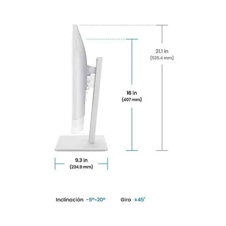 El monitor tiene ajustes de inclinación, pivote, giro y altura para ofrecer una fácil personalización y flexibilidad en un entorno de usuario cómodo ideal, lo que garantiza la productividad durante todo el día.