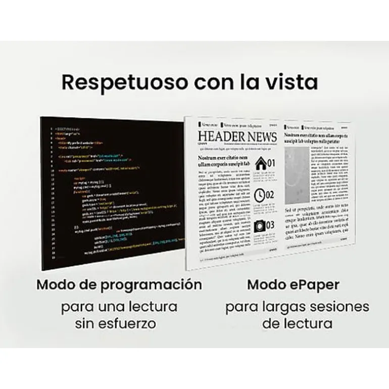 Con el modo de codificación y el modo ePaper, se garantiza una legibilidad sin esfuerzo y comodidad visual para todas sus necesidades.