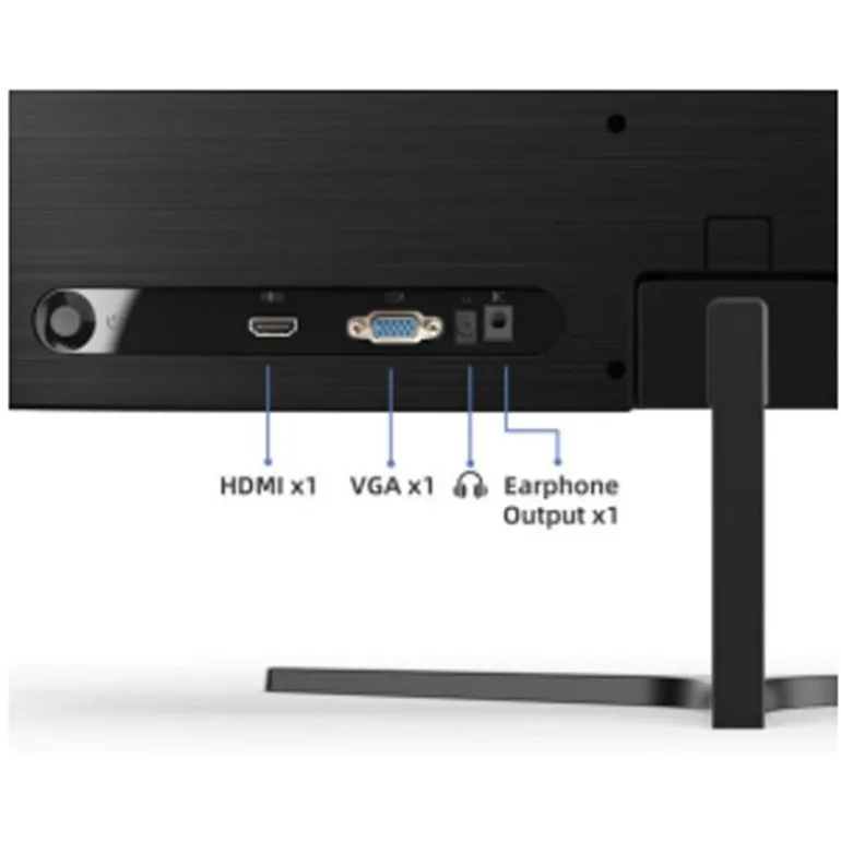 En términos de conectividad, el monitor está equipado con una entrada HDMI y VGA, así como una salida de audio, lo que facilita la conexión a múltiples dispositivos. El soporte desmontable en forma de Y y el diseño ligero y delgado (solo 1.92 kg sin caja) hacen que sea fácil de montar y mover.