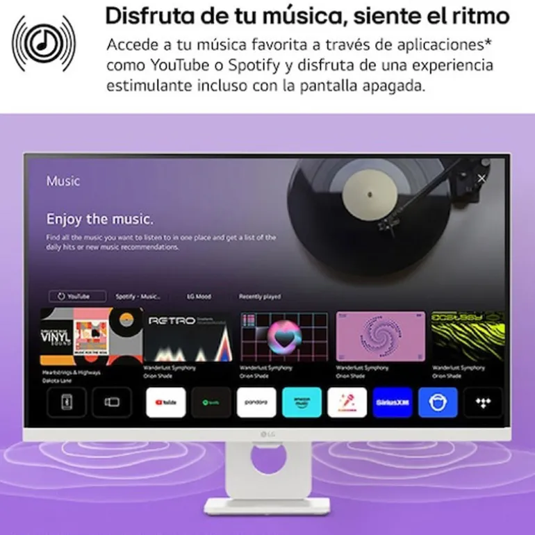 Disfruta de contenidos en streaming 4K como Netflix, Disney+, Spotify, YouTube, videojuegos鈥ás de contenidos verticales como YouTube shorts, TikTok y Reels. Obtén recomendaciones personalizadas, utiliza apps como Deportes, Gaming y LG Fitness, y controla el monitor con el mando a distancia. Su elegante diseño prácticamente sin bordes en tres lados y sus altavoces estéreo favorecen una experiencia de visualización inmersiva.