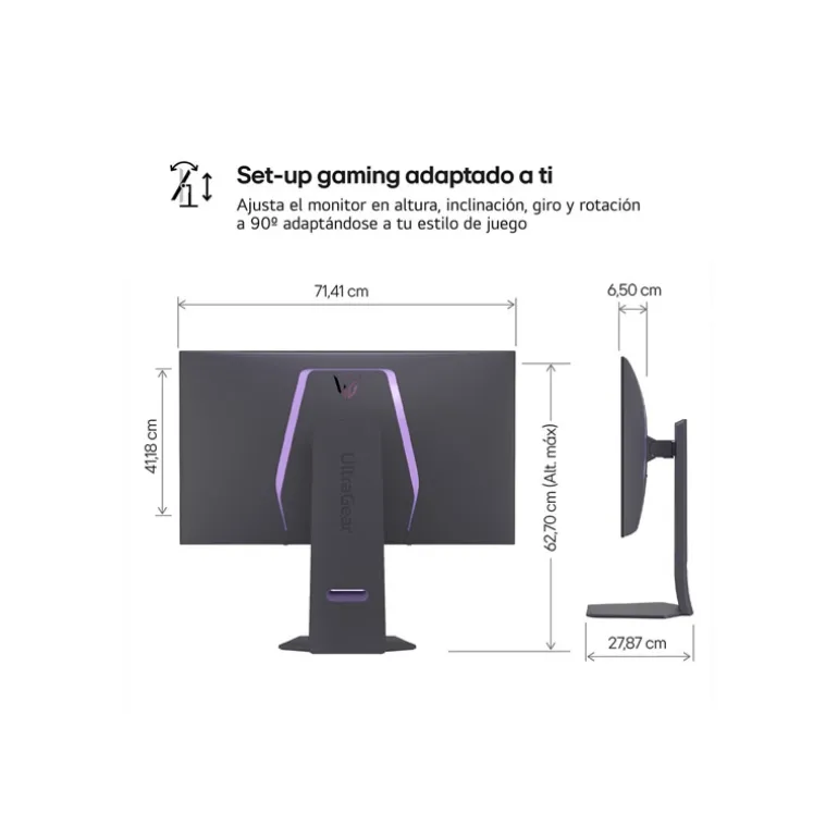 - Ajustes en la posición del monitor: Inclinación (eje horizontal), Altura, Giro (eje vertical), Pivote