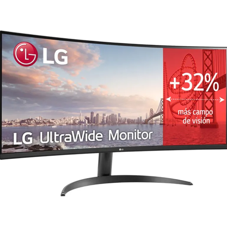 El Monitor LG UltraWide QHD con pantalla curva 1800R, ratio de aspecto 21:9 y un 32% más de visión, es ideal para trabajar desde casa o la oficina. Permite ver distintas ventanas y tener abiertos distintos programas al mismo tiempo.