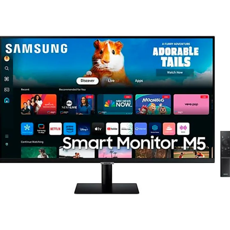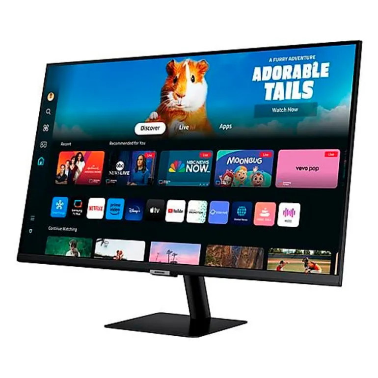 Smart TV Apps. ¿Quieres aprovechar al máximo un espacio pequeño o simplemente tener un segundo televisor? El Smart Monitor es la mejor opción. Disfruta contenido OTT en streaming directamente desde el monitor o entra a Samsung TV Plus para ver canales de televisión en directo y programas bajo demanda sin coste alguno.