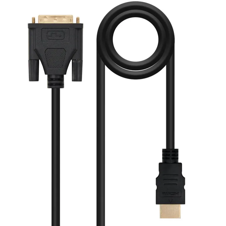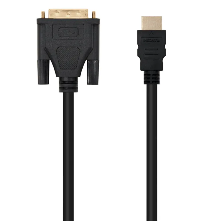 Cable DVI a HDMI con conector tipo DVI 18+1 macho en un extremo y HDMI tipo A macho en el otro.