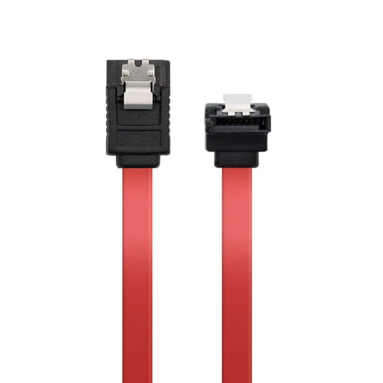 Cable SATA datos con anclajes para una conexión segura y acodado en un extremo para disco duro u otro dispositivo con interfaz SATA