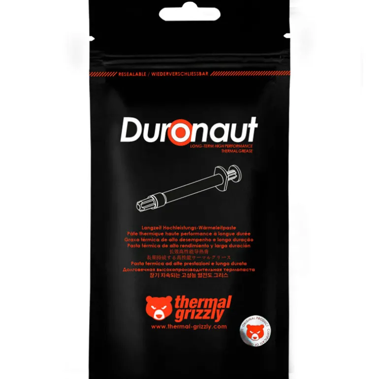 Thermal Grizzly Duronaut es una pasta térmica de alto rendimiento con una estabilidad excepcional a largo plazo y una conductividad térmica superior. Es una opción ideal para jugadores y overclockers y sirve como un producto de primer nivel para sistemas de enfriamiento industrial exigentes.
