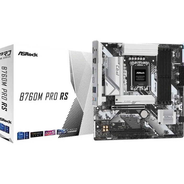 La ASRock B760M PRO RS es una placa base micro-ATX para socket Intel LGA 1700, ideal para montar un PC equilibrado y con buena base de ampliación para gaming y productividad. Con chipset Intel B760, ofrece compatibilidad con procesadores Intel Core de 12ª/13ª/14ª generación (según soporte), opciones de almacenamiento M.2 para SSD NVMe y una conectividad moderna para configurar un equipo rápido y estable sin irse a una gama alta.