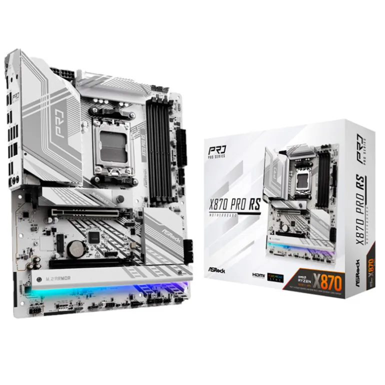 La Placa Base ASRock X870 PRO RS Socket AM5 es una opción ATX avanzada con el chipset X870, ideal para entusiastas y profesionales. Ofrece compatibilidad con PCIe 5.0, múltiples opciones de conectividad USB y tres ranuras M.2 de distintas generaciones, asegurando alta velocidad y versatilidad en almacenamiento y expansión.
