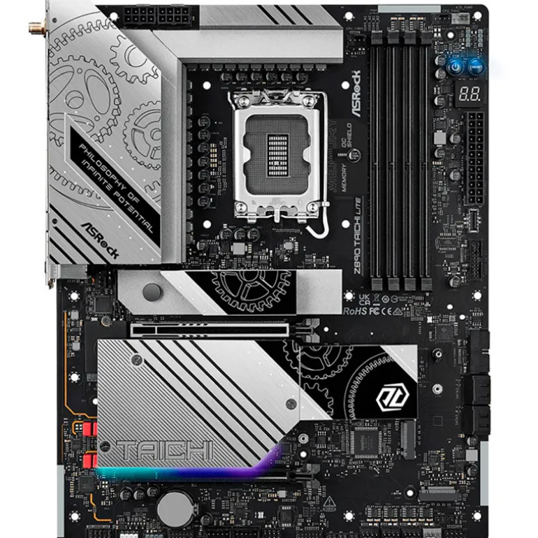La ASRock Z890 Taichi Lite es una placa base ATX de alto rendimiento diseñada para procesadores Intel® Core鈩ª generación (Socket LGA 1851). Ofrece una combinación de robustez, conectividad avanzada y capacidad de expansión, ideal para entusiastas de la informática y gamers que buscan estabilidad y velocidad.