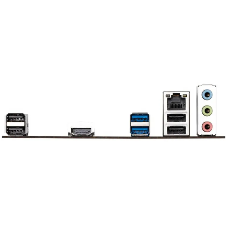 - Panel Trasero E/S 1 x puerto HDMI. 2 x puertos USB 3.2 Gen 1. 4 x puertos USB 2.0/1.1. 1 x puerto RJ-45. 3 x jacks de audio.