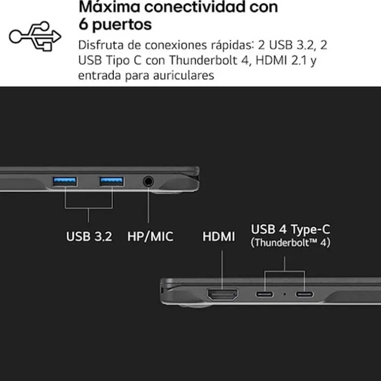 USB-C: 2 × USB4 Gen3x2 (Tipo-C) con carga rápida, DisplayPort y Thunderbolt 4 integrado