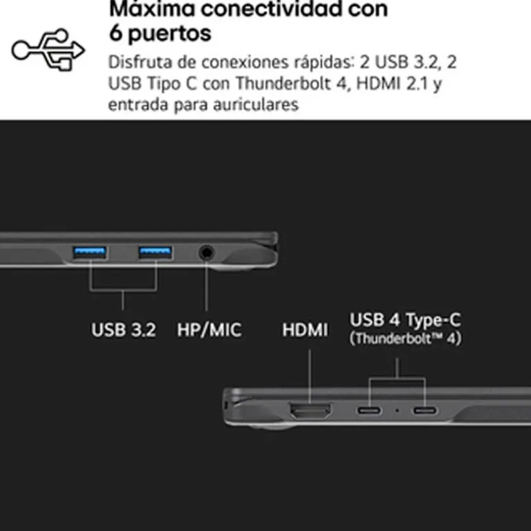 Conéctate con gram +View, monitores más grandes, dispositivos de última generación o almacenamiento de alta velocidad. Sus numerosos puertos lo convierten en un paraíso plug-and-play de mayor productividad y entretenimiento sin fin.