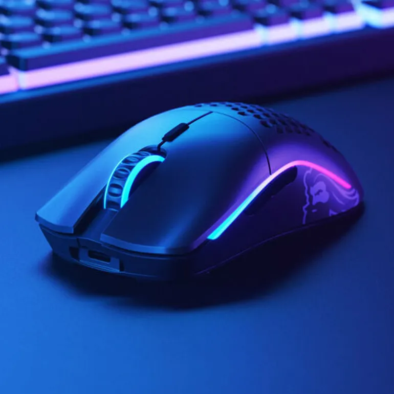Con un peso de tan solo 65 g, el Model O-Wireless combina ligereza y durabilidad. Su diseño de panal no solo reduce el peso, sino que también mejora la ventilación y permite ver la mecánica interna iluminada por su sistema RGB. La carcasa mate proporciona un agarre firme y cómodo, ideal para largas sesiones de juego. Gracias a su forma ambidiestra, es adecuado tanto para diestros como para zurdos con manos pequeñas o medianas.
