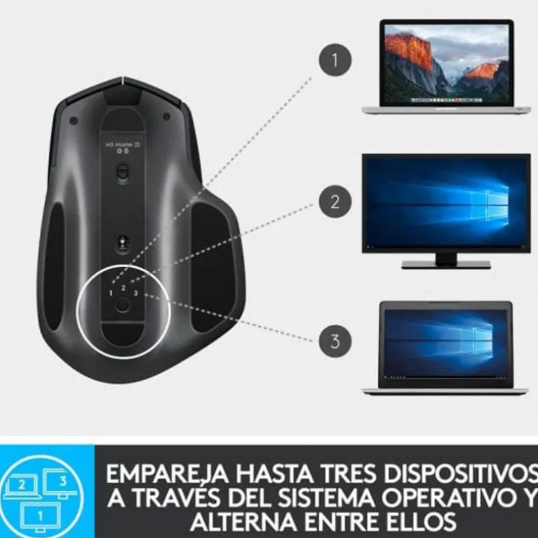 MX MASTER 2S es el ratón de precisión definitivo para usuarios avanzados. Aprovecha la potencia de Logitech FLOW y lleva el uso de varios ordenadores a un nuevo y audaz nivel. Controla hasta tres ordenadores y mueve texto, imágenes y archivos entre ellos a la perfección. Desplázate por documentos y páginas Web con mayor rapidez y facilidad gracias al botón rueda de velocidad adaptable. MX MASTER 2S conserva una carga completa durante más de dos meses. Y en sólo tres minutos obtiene energía suficiente para un día completo de uso. Trabaja prácticamente en cualquier superficie con seguimiento de alta precisión, incluso sobre cristal.* Su forma contorneada creada a mano te permite apoyar la mano y la muñeca en una posición cómoda y natural. * 4 mm de grosor como mínimo.