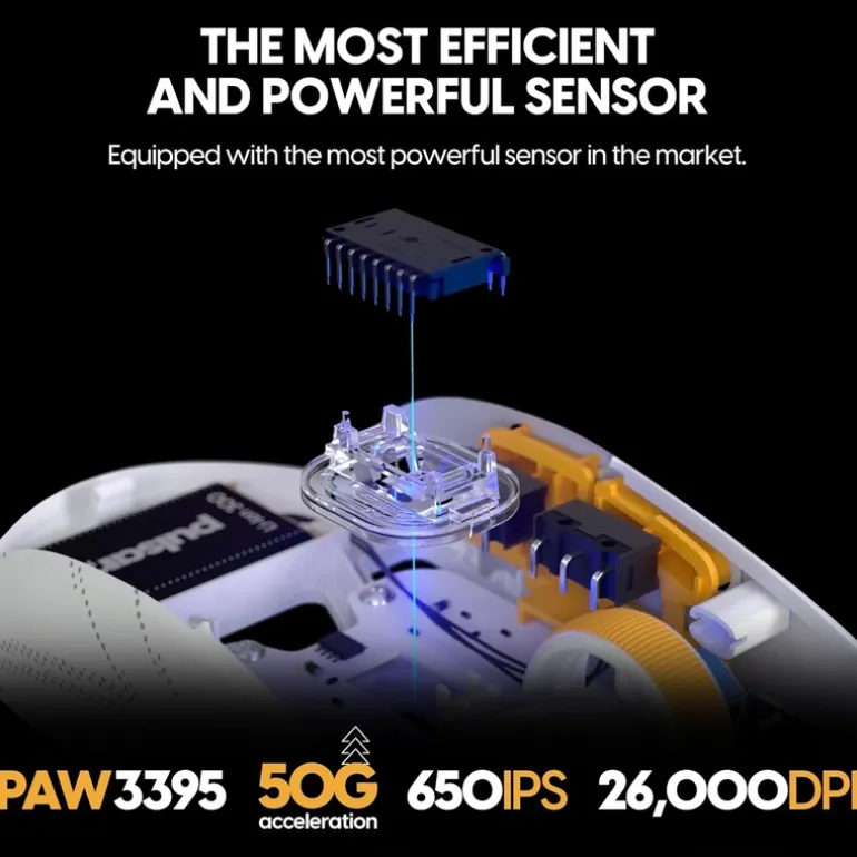- Tecnología de vanguardia: con el sensor PAW3395 de PixArt con tecnología Motion-Sync integrada, alimentada por un MCU nórdico, esta tecnología es el epítome de la eficiencia y el procesamiento ultrarrápido