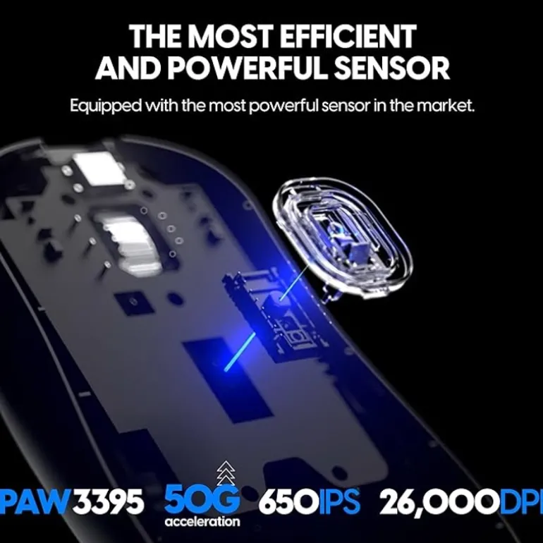 - EL SENSOR MÁS EFICIENTE Y POTENTE: el vanguardista sensor PAW3395 de PixArt, el último buque insignia en tecnología de sensores, Nordic MCU, que garantiza una eficiencia energética excepcional y un procesamiento rápido y preciso.
