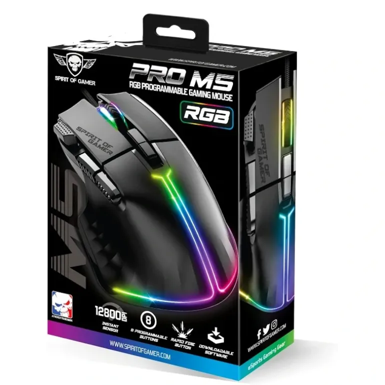 Ratón Spirit of Gamer Pro M5 Gaming 12800 Dpi RGB Negro
