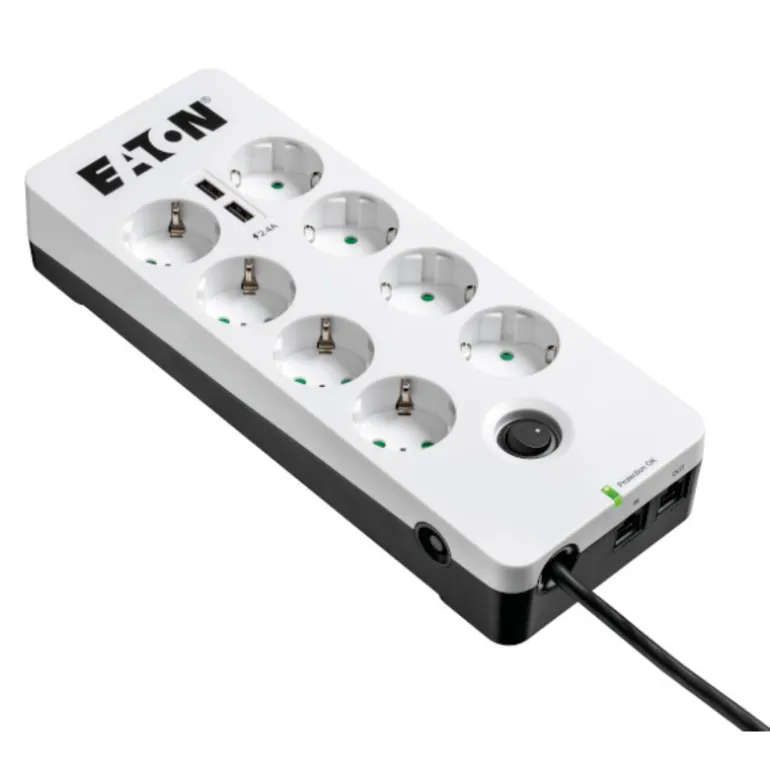 Eaton PB8TUD. Cantidad de salidas AC: 8 salidas AC, Tipo de salida AC: Tipo F, Voltaje nominal de entrada: 220 – 250 V. Color del producto: Negro, Blanco, Tiempo de respuesta: 0,000001 ms. Longitud de cable: 1,5 m, Peso: 713 g, Ancho: 110 mm. Certificación: CE / EAC / CM
