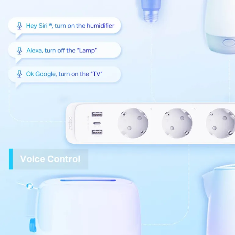 Control por Voz: Compatible con Amazon Alexa, Google Assistant y Apple HomeKit, puedes controlar la regleta y tus dispositivos conectados con simples comandos de voz.