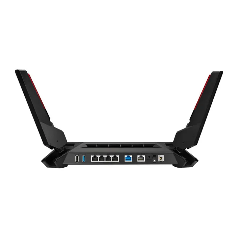 Router gaming GT-AX6000 Wi-Fi 6 (802.11ax) de alta eficiencia que soporta velocidades de 6000 Mbps y cuenta con unos canales de 160 MHz que ofrecen más eficiencia y rendimiento.