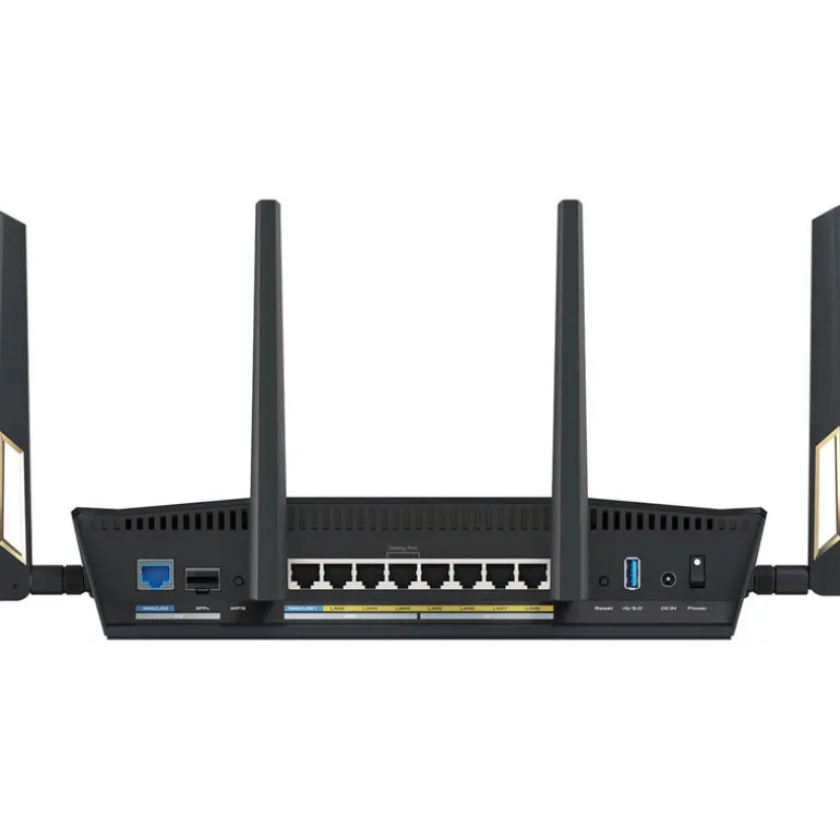 El RT-BE88U ofrece una increíble flexibilidad de red. Viene con puertos dobles de 10 Gigabit, cuatro puertos de 2,5 Gigabit y cuatro puertos Gigabit que se combinan para una capacidad WAN y LAN de hasta 34 Gigabit. También admite la agregación WAN/LAN, lo que te da flexibilidad para proporcionar un ancho de banda masivo a los dispositivos conectados o aprovechar las conexiones a Internet de velocidad ultrarrápida.
