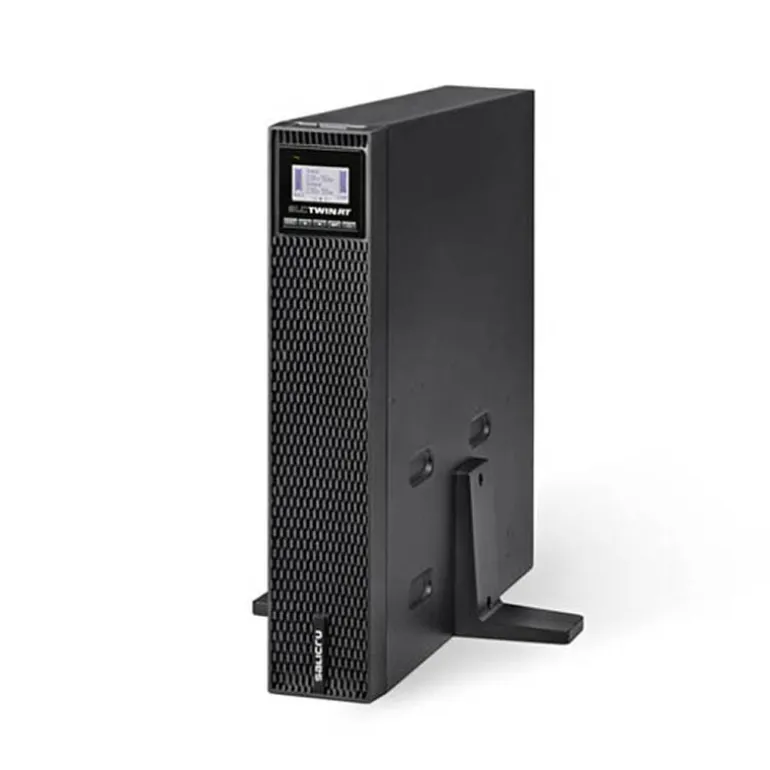 Presenta el SLC TWIN RT3 como una solución UPS (Sistema de Alimentación Ininterrumpida) de doble conversión en línea, diseñada para ofrecer un equilibrio perfecto en todas sus características: desde su funcionamiento eficiente hasta su sistema de carga de batería optimizado.