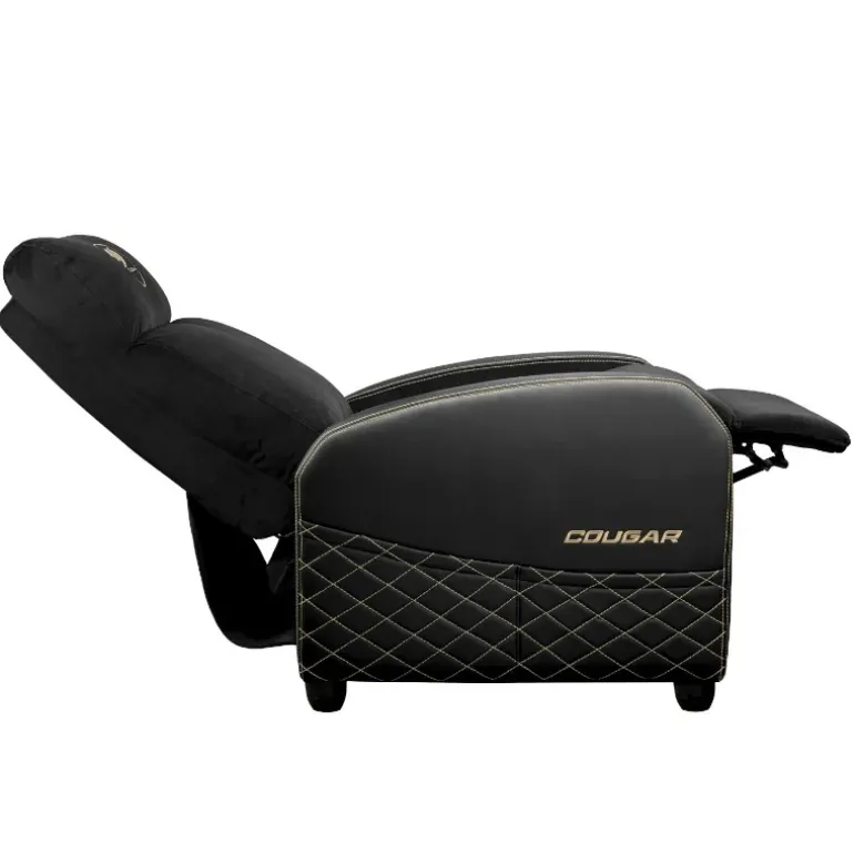 Además, la silla está equipada con un práctico bolsillo lateral que mantiene tus esenciales al alcance de la mano, facilitando el acceso rápido a lo que necesitas sin interrumpir tu concentración en el juego. El diseño ajustable no solo mejora la funcionalidad de la silla, sino que también aporta un elemento de lujo con su tapizado de terciopelo y el logotipo bordado, complementado por un elegante patrón de cuadros de diamantes. Con una capacidad de soporte de hasta 135 kg, la Cougar Ranger Elite Gold está preparada para proporcionar comodidad y soporte incluso en las sesiones de juego más intensas.