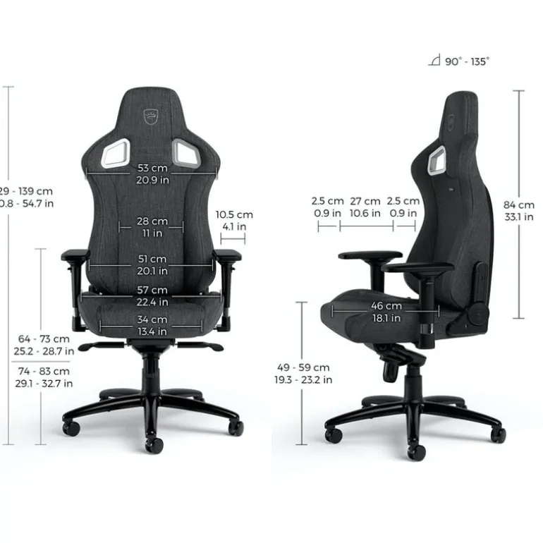 Siéntese como quiera con la nueva silla de juego EPIC TX de noblechairs – Antracita. El ajuste de la altura, junto con nuestro práctico mecanismo «rocker», ofrece una gama de movimientos que le permiten encontrar la posición perfecta. Con 11° de movimiento en el mecanismo «rocker» y la posibilidad de ajustar el respaldo de 90° a 135°, podrá jugar, ver o trabajar con comodidad en todo momento.