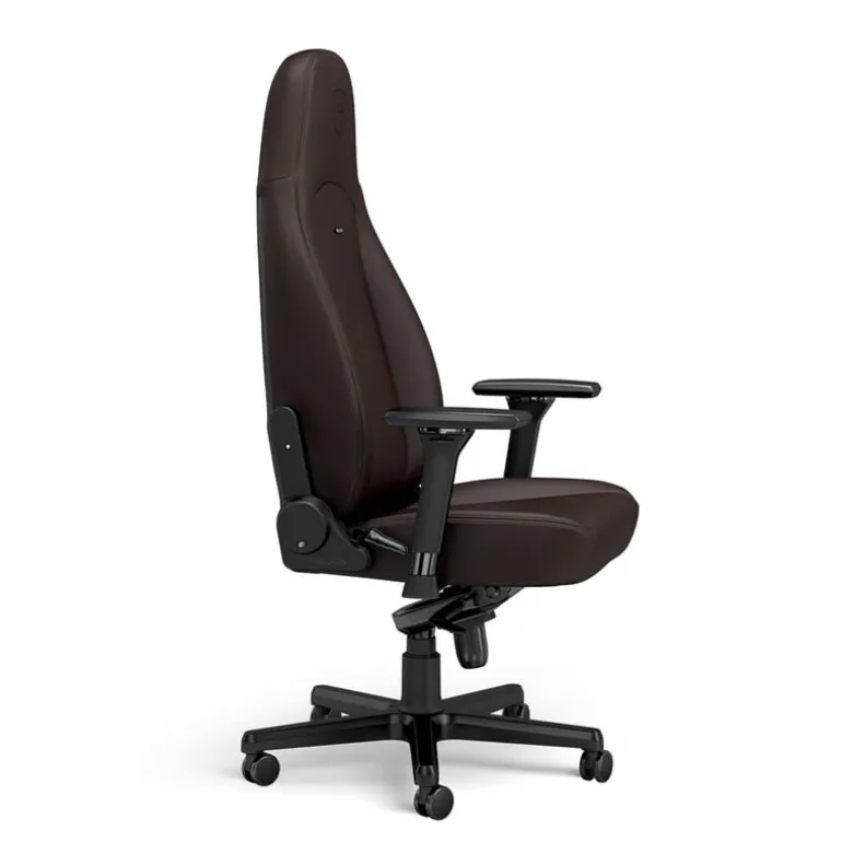 La estructura de la serie ICON de noblechairs está formada por una base de cinco puntos con recubrimiento de polvo, recientemente mejorada, compuesta por aluminio macizo y ruedas especiales. Estas ruedas de 60 mm tienen un núcleo de nylon y un revestimiento de poliuretano. Gracias a estos materiales, son suaves, silenciosas durante el movimiento y se adaptan por igual a suelos blandos y duros. El elevador hidráulico de gas cuenta con la certificación de seguridad de clase 4 y, en combinación con la nueva base optimizada, es adecuado para una carga máxima de hasta 150 kg.