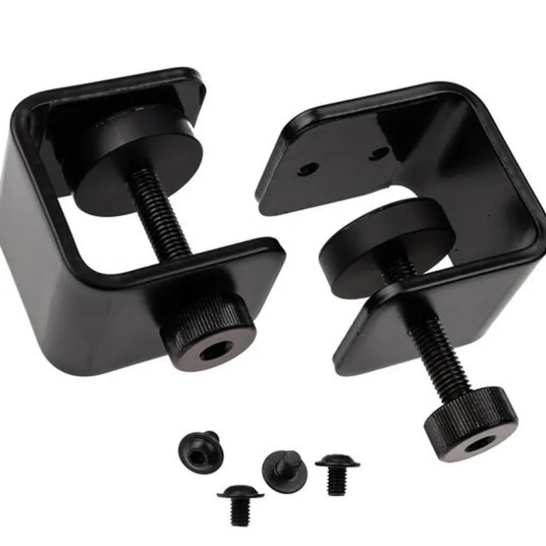 Fabricadas en acero con recubrimiento en polvo, las abrazaderas combinan durabilidad con un diseño atractivo y resistente. Su construcción robusta y su capacidad para ajustarse a un espesor máximo de tablero de 37 mm aseguran una compatibilidad amplia y fiable. La instalación es rápida y sencilla, permitiendo a los usuarios adaptar el soporte a sus necesidades específicas en cuestión de minutos.