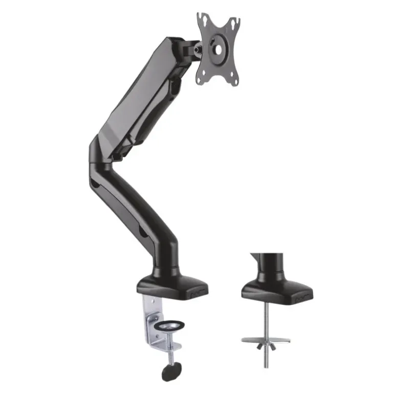 - Angulo de Inclinación: -45º / +90º. Angulo máximo de giro: 360º. Ángulo máximo de rotación: 180º. Brazo articulado con pistón de gas para un ajuste fácil y cómodo.