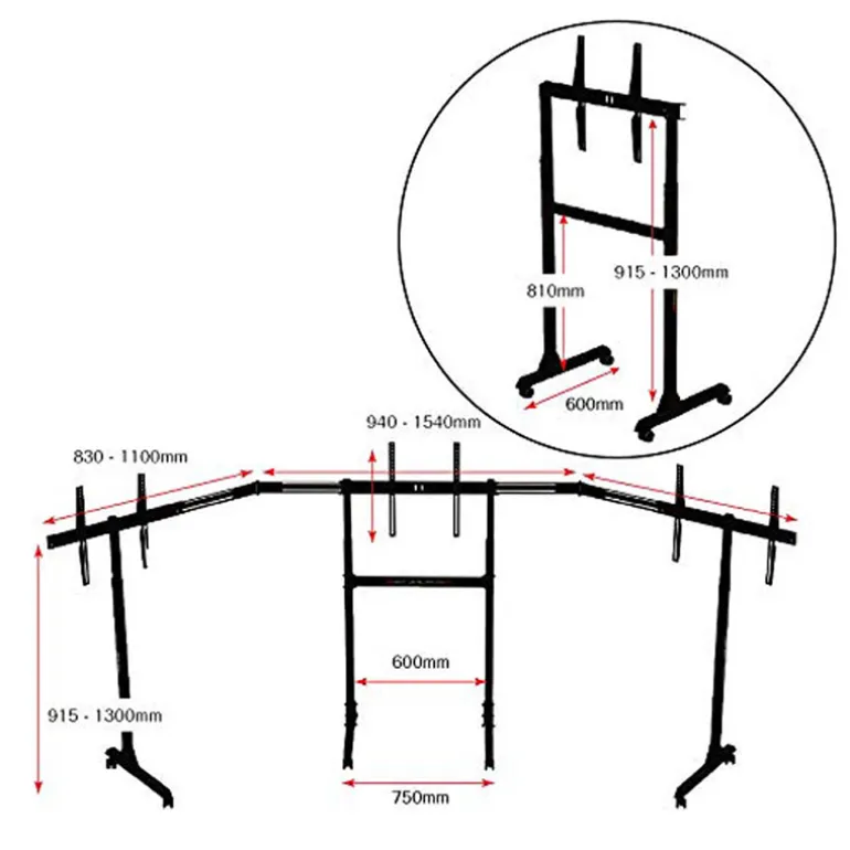 Con el soporte de monitor individual independiente Next Level Racing , la cabina de juego se complementa con un soporte de pantalla adecuado, para que finalmente te sientas justo en el medio de la acción. Race like a pro es el lema, el soporte gris metalizado lo hace posible y puede contener hasta tres monitores o televisores con un tamaño de 32″ – 65″ y un peso máximo de 70 kg . La pantalla montada aún puede ajustarse en altura de 91,5 a 154 centímetros y posicionarse perfectamente para hacer de los juegos de carreras una experiencia real.