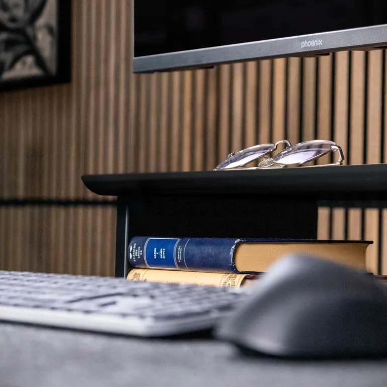Eleva tu productividad con el soporte de monitor Harmony, diseñado para ofrecer funcionalidad y estilo. Fabricado en madera laminada de alta calidad, permite colocar uno o dos monitores con total estabilidad. Mejora la postura, organiza tu espacio y aporta un toque elegante a cualquier entorno profesional.