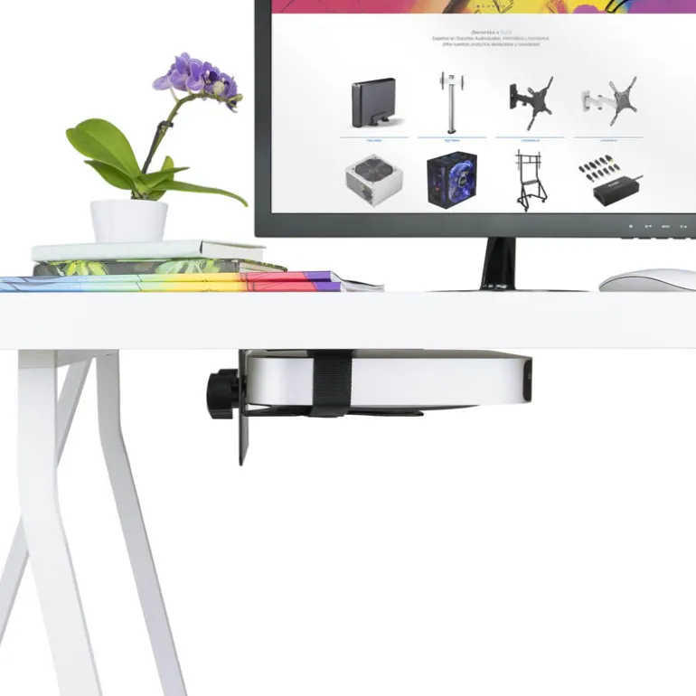 Soporte para mini PC. Compatible con mini PC de máximo 70 mm de ancho.