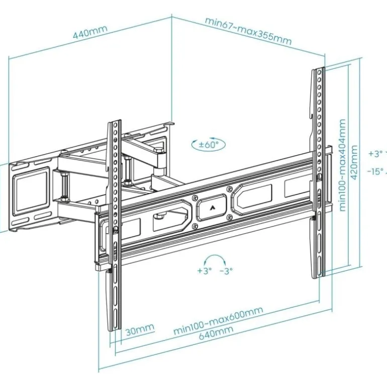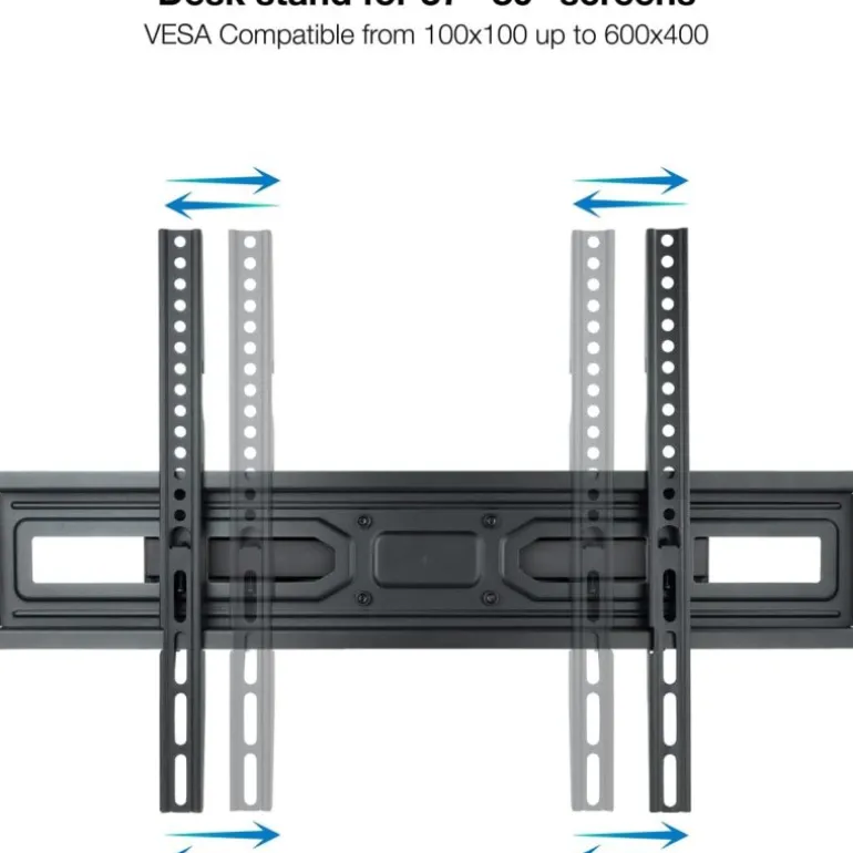 El soporte TV Tooq LP7866TN-B es una solución versátil y resistente para pantallas de 37″ a 80″. Con amplia compatibilidad VESA y capacidad de carga de hasta 40 kg, ofrece flexibilidad de instalación. Su ángulo de inclinación de +3°/-15°, giro de +60°/-60° y nivelación de +3°/-3° garantizan una visualización óptima. La distancia ajustable a la pared es de 67-355 mm, mientras que su diseño incluye un nivel de burbuja para una instalación precisa. Adicionalmente, es compatible con pantallas curvas, presenta un elegante color negro y un peso neto de 3,77 kg.