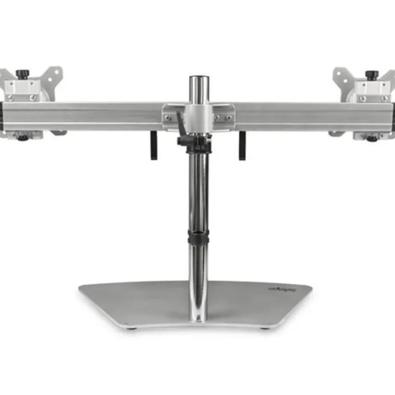 El diseño de barras cruzadas del soporte para monitor doble mantiene ambos monitores perfectamente alineados, a fin de facilitar la visualización. Puede ajustar de forma personalizada la posición de sus pantallas, mediante la inclinación a +/-15 grados. También puede ajustar la altura de los monitores a lo largo del mástil, a hasta 40,5cm.