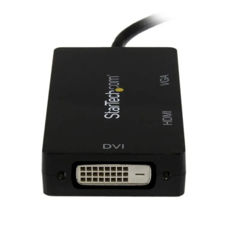 - Este adaptador tres en uno garantiza la compatibilidad con prácticamente cualquier pantalla mediante la conversión de DisplayPort a VGA, HDMI o DVI