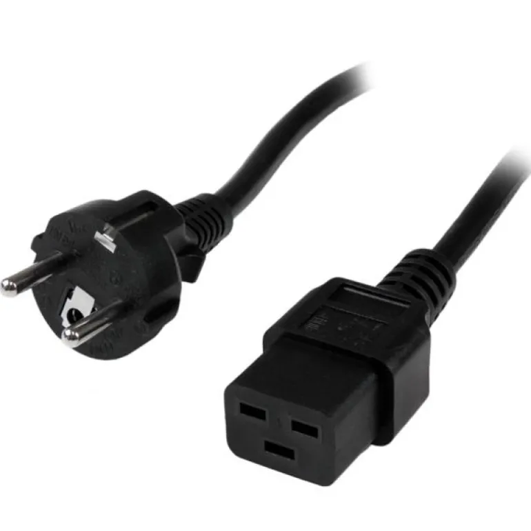 El cable de alimentación (2 metros) de ordenador, modelo PXTEUC192M, incluye un conector Schuko CEE7 en un extremo y un conector IEC 320 C19 en el otro: duradero y resistente cable diseñado para la alimentación de un ordenador o equipo de sala de servidores, mediante un tomacorriente con conexión a tierra.