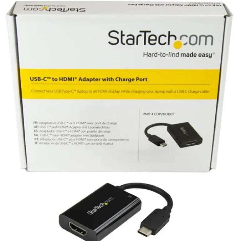 Los ordenadores portátiles de tamaño más pequeño y peso más ligero son fabulosos en cuanto a portabilidad, pero con la desventaja de tener menos puertos de conectividad. Este adaptador de vídeo USB-C es compatible con la entrega de potencia por USB hasta 60W e incluye un puerto USB-C adicional, a fin de poder cargar su ordenador portátil con el adaptador de alimentación USB-C, incluso mientras transmite vídeos de salida. Muchos ordenadores portátiles como Dell XPS y MacBook Pro son compatibles con la carga a través de su puerto USB-C mediante entrega de potencia por USB; consulte las especificaciones de su equipo para confirmar si es compatible.