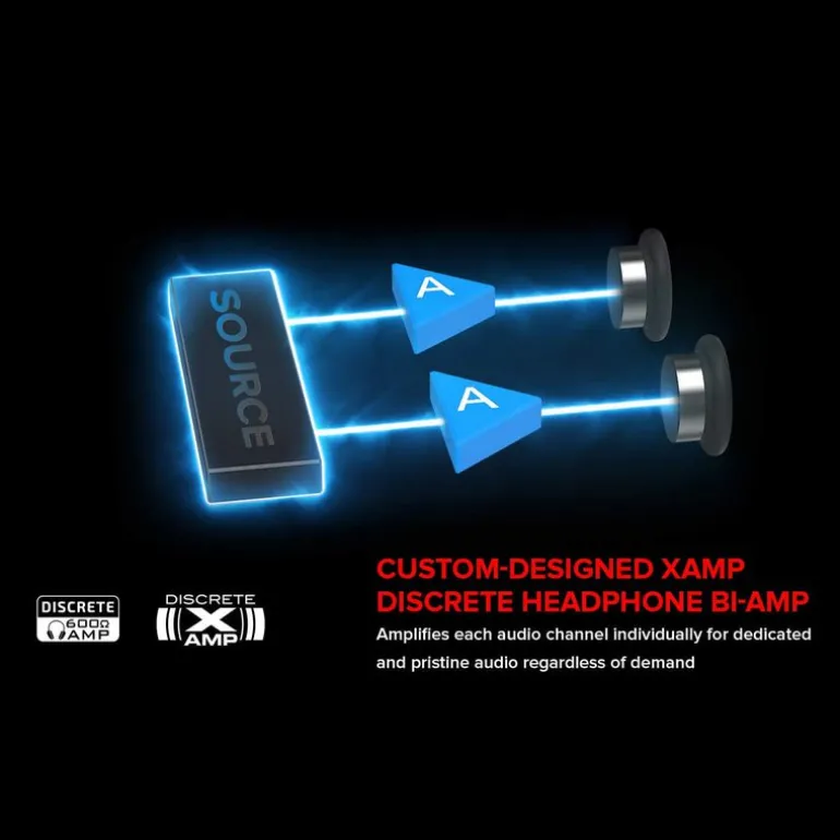 En el biamplificador de cascos discreto Xamp, cada canal de audio está amplificado individualmente, permitiendo a Sound BlasterX AE-5 Plus ofrecer un nuevo nivel de fidelidad de audio impoluta en un modo inalterado y sin pérdidas para cada auricular independientemente de su demanda.