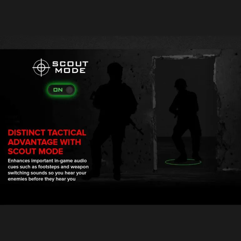 Sound BlasterX AE-5 Plus cabalga en el legado de Sound Blaster de proceso y mejoras de audio, disponible mediante el software Sound Blaster Command. Sound Blaster Acoustic Engine es un paquete de tecnologías de procesamiento de audio completamente personalizable que ofrece nuevos niveles de inmersión en audio y precisión para obtener la última ventaja competitiva. Estas tecnologías de sonido crean niveles de realismo acústico sin precedentes, incluyendo fantásticos efectos de sonido surround para sus altavoces y auriculares. - Scout Mode