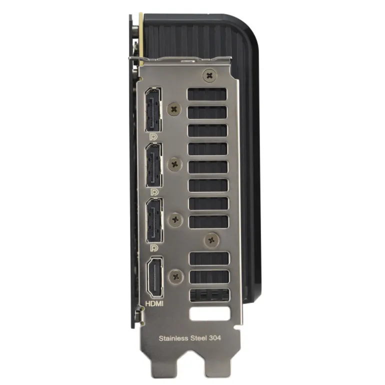Las grandes rejillas de ventilación de la placa posterior mejoran significativamente la disipación de calor, lo que ayuda a mantener la GPU más fría durante las tareas intensas. Este flujo de aire adicional ayuda a garantizar temperaturas óptimas, aumentando el rendimiento, la longevidad y la estabilidad al defenderse contra el sobrecalentamiento y el estrangulamiento térmico.