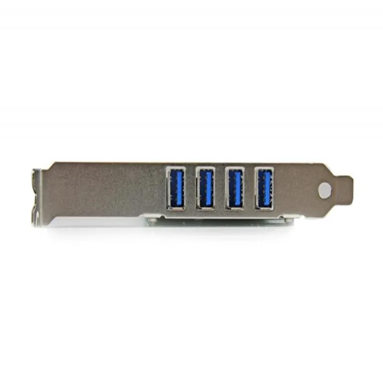 El uso de un diseño «apilado» que distribuye los puertos uno encima del otro permite colocar más puertos en espacios muy reducidos. Este adaptador PCIe USB 3.0 de 4 puertos ubica los cuatro puertos USB 3.0 de manera externa, y a su vez facilita la adaptación de la tarjeta a sistemas informáticos de factor de forma pequeño/perfil bajo.