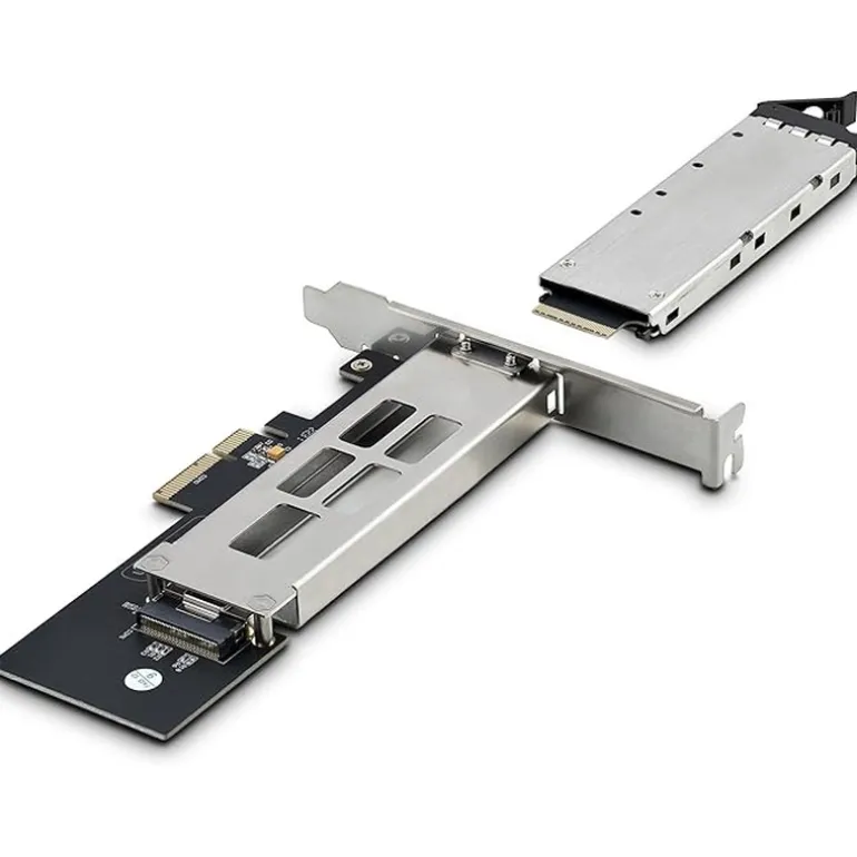 - Supports NVMe PCI-Ex (M key) M.2 drives with 2230, 2242, 2260 or 2280 drive height