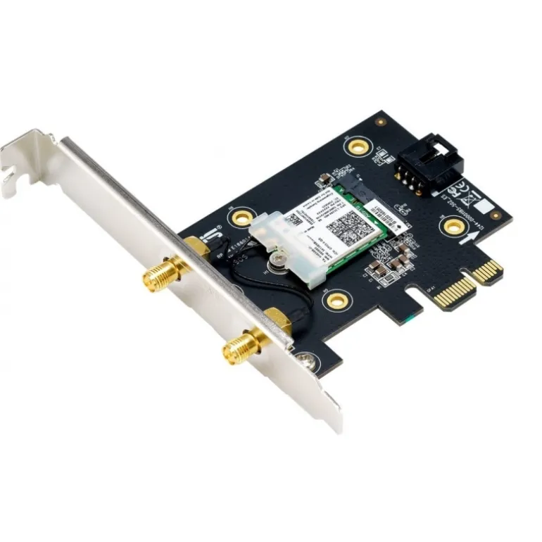 PCI-E WiFi 6 (802.11ax) AX3000 de doble banda. Soporta 160 MHz, Bluetooth 5.0, seguridad de red WPA3, OFDMA y MU-MIMO