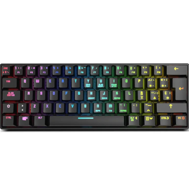 Krom Kluster es el teclado mecánico gamer definitivo que estabas buscando. Con un diseño ultracompacto en formato 60 %, este teclado mini inalámbrico con RGB te brinda la ventaja necesaria para dominar en tus partidas, sin dejar margen para el contraataque.