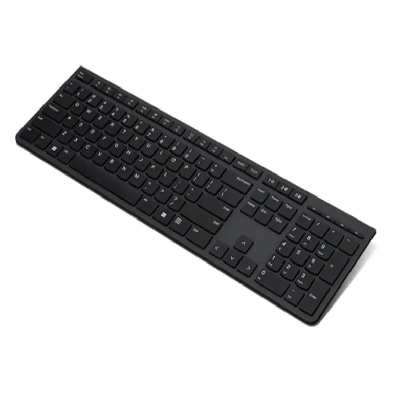 Productividad todo en uno. Creado de forma sostenible: el teclado inalámbrico recargable Lenovo Professional es una revolución en productividad y diseño. Su teclado de tamaño completo cuenta con interruptores de tijera que ofrecen una experiencia de escritura superior. Además, está fabricado con un 65% de material reciclado, contribuyendo a la protección del medioambiente.