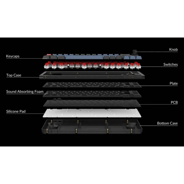 Para construir un teclado completamente personalizable, diseñamos cada componente para que se pueda ensamblar fácilmente, de modo que puedas personalizar y ajustar cualquier o todos los componentes de la manera que desees.