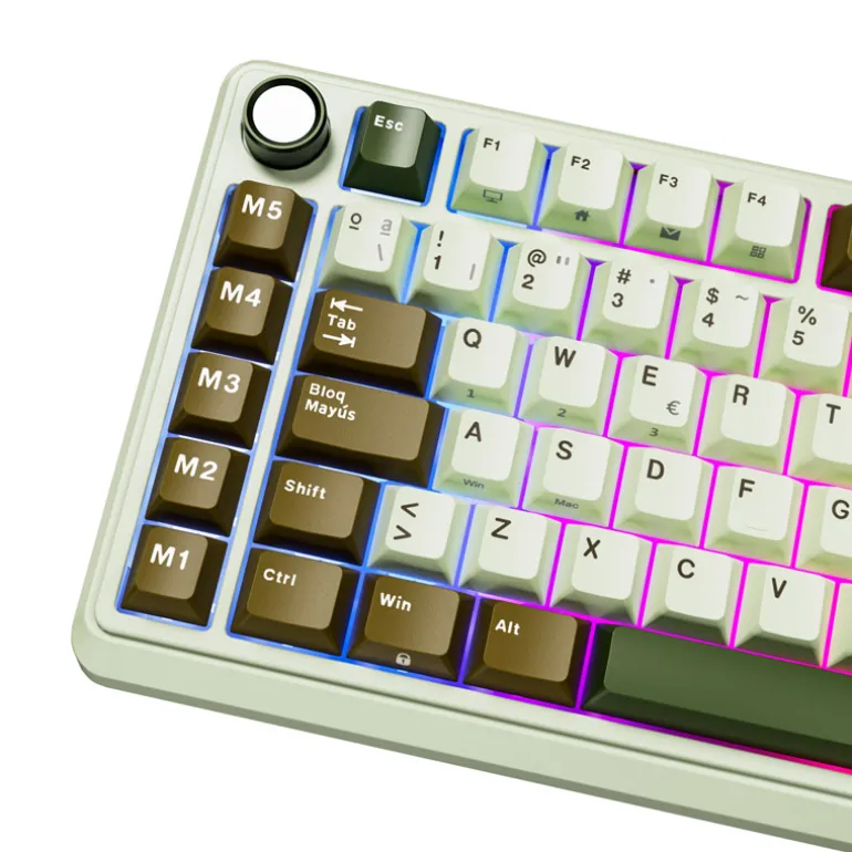 Teclado para Mac y Windows Royal Kludge RKL75 ISO-ES RGB Hot-Swappable Switch Cream Wireless Palm Green
