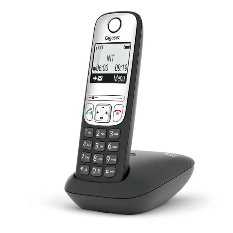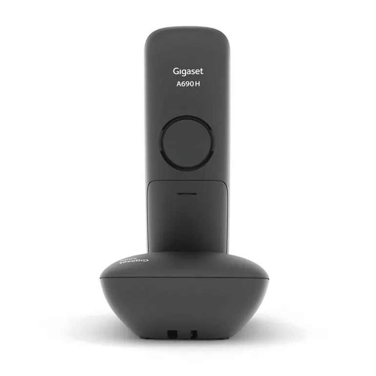 Lo primero que se nota sobre el Gigaset A690 es su gran pantalla gráfica iluminada en blanco y negro. La pantalla tiene varias ventajas: la gran pantalla numérica en el modo de marcación y el fuerte contraste entre las letras blancas y el fondo negro se han diseñado para garantizar que el teléfono sea aún más fácil de usar. El teclado ergonómico con teclas iluminadas y el manejo intuitivo, también contribuyen a que hablar por teléfono sea lo más cómodo posible.